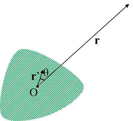 ということで、今回は下の図のように、任意の電荷分布が作るポテンシャルが遠方でどのように近似されるかについて考えていく。