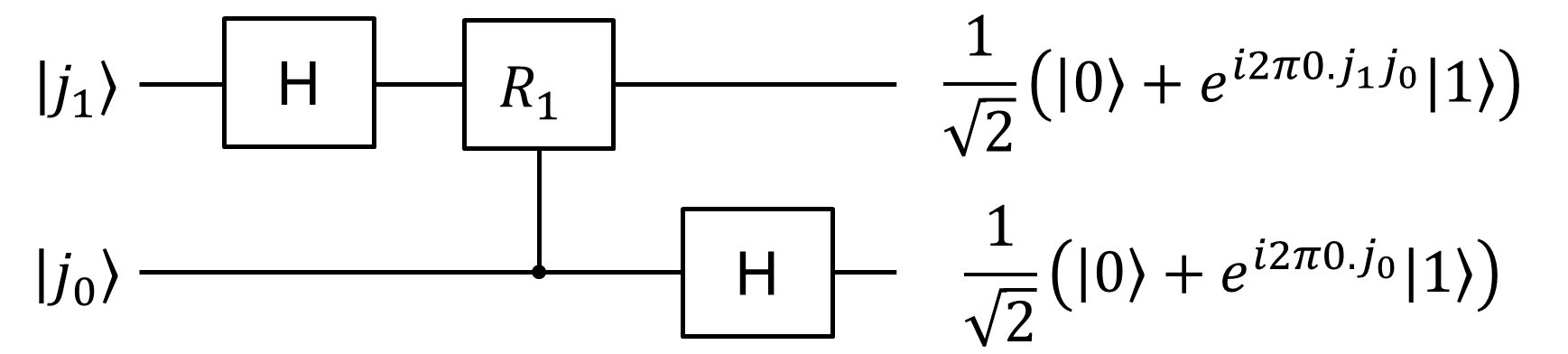 \[\ket{j_1j_0} \to \frac{1}{\sqrt{2}}(\ket{0}+e^{i2\pi 0.j_1}\ket{1})\ket{j_0}\]
