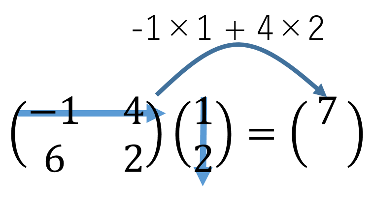 そのために、まずは普通の行列をベクトルにかけて、ベクトルを変換するときの計算方法についておさらいする。行列とベクトルの掛け算というのは、下の図のように計算すればいいのだった。