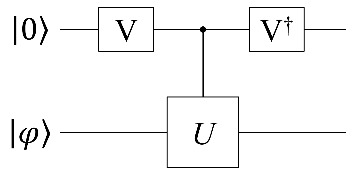 &\to \alpha\ket{0}\ket{\varphi}+\beta\ket{1}(U\ket{\varphi})\\