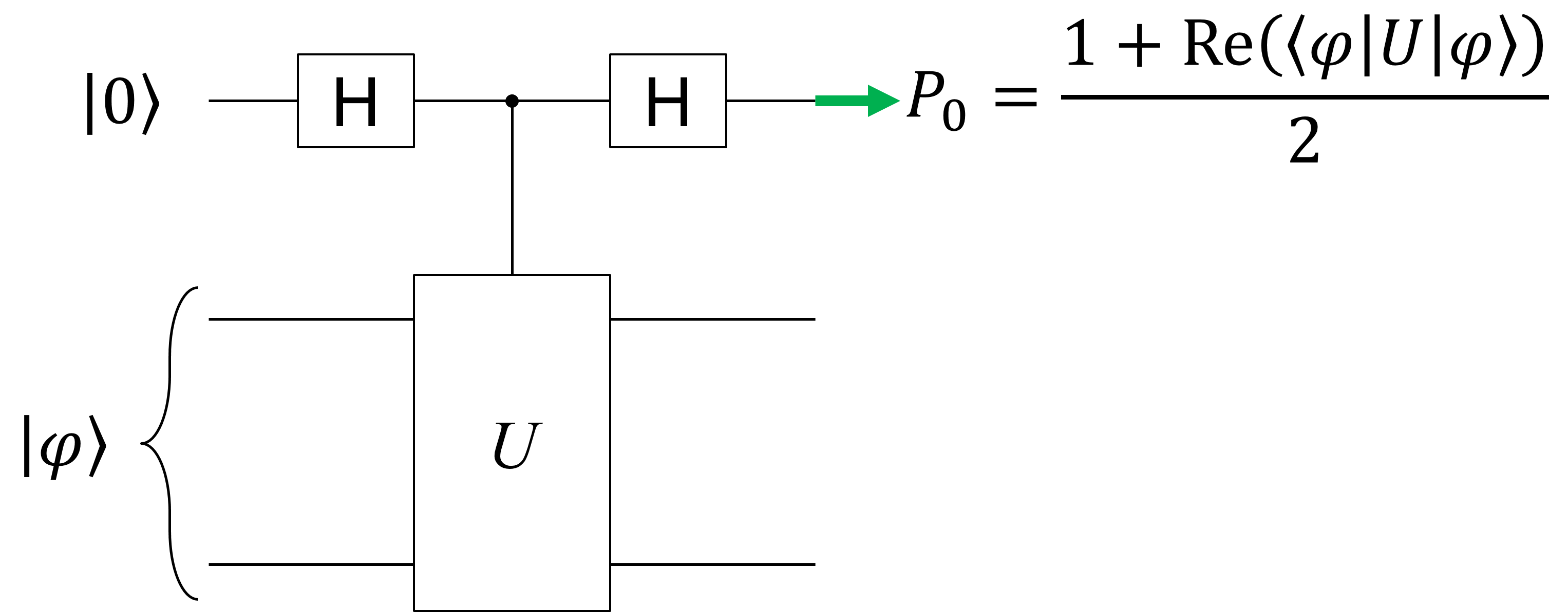 \[P_0 = \frac{1+\text{Re}\left(\bra{\varphi} U\ket{\varphi}\right)}{2}\]